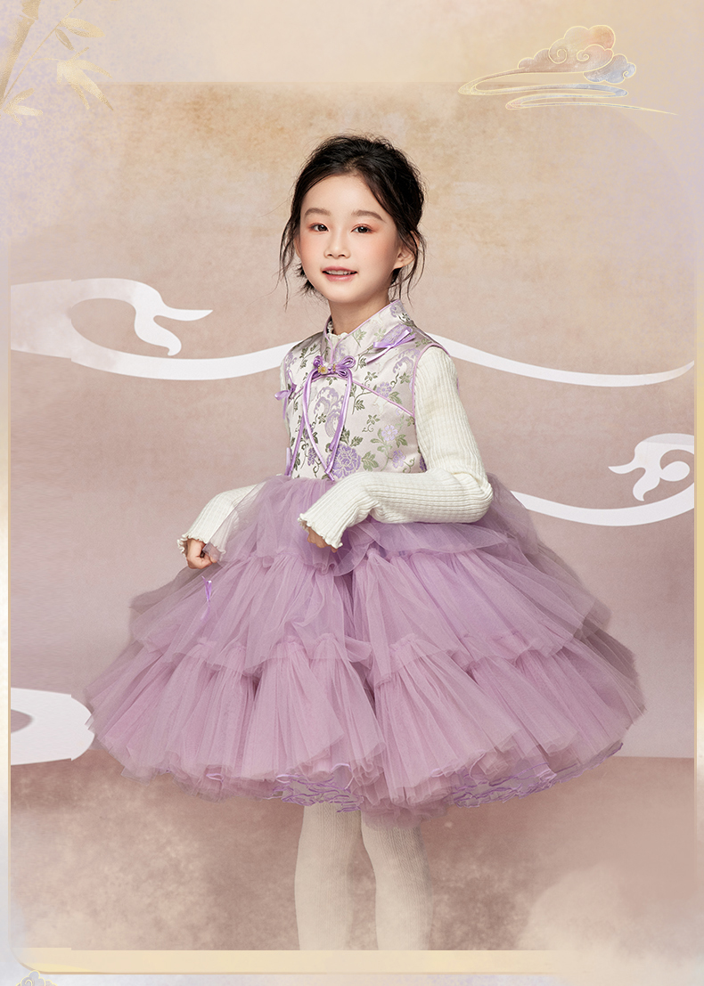 肩上云【玉兔牡丹】女童紫色新中式网纱梦幻连衣裙超仙古装演出服jianshangyun [Jade Rabbit Peony] Girls’ Purple New Chinese Style Net Fabric Dreamy Dress Super Fairy Costume Performance Costume